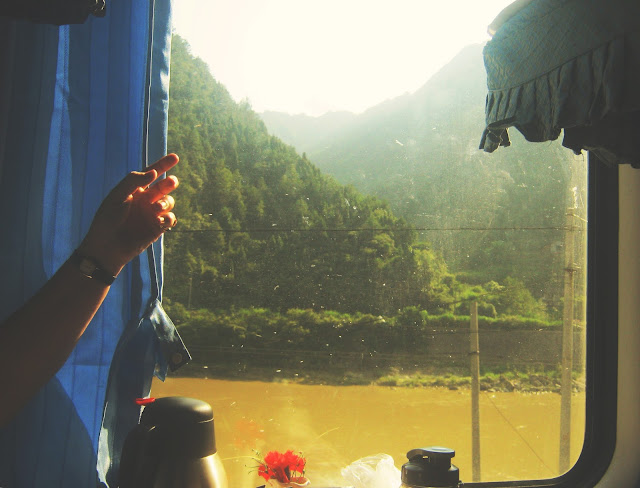 After the terrifying experience of flying domestically across China, taking a train seemed like a real pleasure, especially considering how cheap it is for us to buy first class tickets. Being a fourteen hour train ride, there was not much to do but to witness the amazing sites of the outside world, that is the unknown China in between the grand prosperous cities. What lies there is a ever changing canopy swapping between untouched landscapes of natural beauty and dystopian images of the nation's rush towards modernisation. It is a story of green meadows, towering cranes, rubbish, rivers and nuclear coolers. One cannot help but stop and wonder what kind of lives are lived by those who dwell in the most isolated, and or dilapidated parts of the countryside.